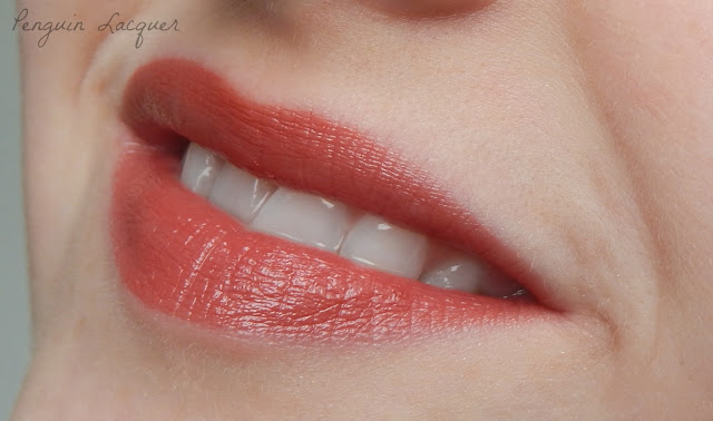 Cinnamon Cashmere hat einen leichten Touch ins Korallfarbene. Ich fand ihn angenehm zu tragen, da er nicht hochdeckend ist, sind Farbverluste auch nicht so schlimm. Natürlich ist bei so einem Finish das Make Up nicht unverwüstlich. Schon beim Trinken färbt er ab. Das Nachtragen ist aber total unkompliziert, deswegen ist das nicht schlimm.